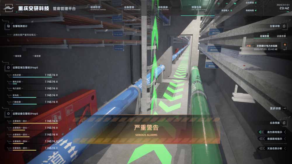 重庆万盛智慧管廊综合管理平台,采用先进技术打造智能体系。管廊内运用传感器等设备,对各类管线运行状态全方位实时监测,涵盖温度、压力、电流等参数。一旦数据异常,立即触发联动报警机制,快速通知维护人员。同时,通过三维可视化技术与管廊数字建模,构建出逼真的管廊虚拟模型,能直观呈现管廊布局、管线走向及设备位置,为管理、维护及应急处置提供精准依据,极大提升管廊管理效率与安全性。