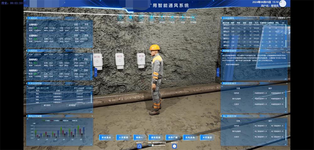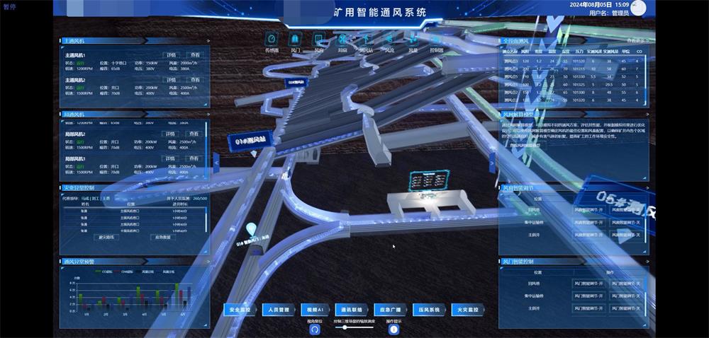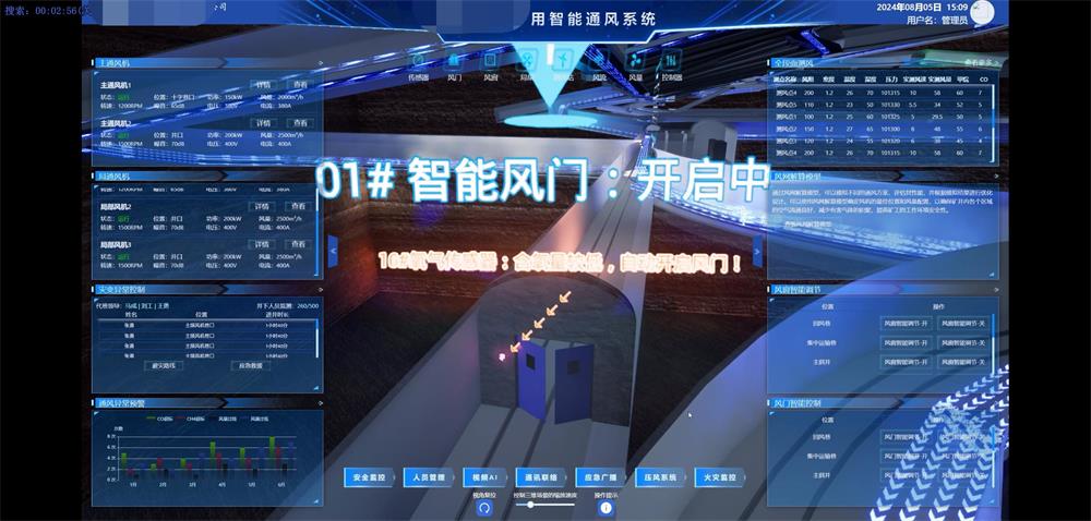 智慧井下通风系统构建井下空气循环智能保障体系,以高性能风机为核心,精准调控风量满足井下作业需求。系统实现风机与风门联动控制,风门可根据风机运行状态及井下工况自动调节开关角度,确保通风路径最优。同时,实时监控风机、风门等设备运行参数,及时预警故障;通过部署多类型传感器,持续监测井下瓦斯浓度、风速、温度等关键指标,全方位保障井下通风安全与作业环境稳定。